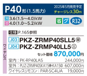 三菱 スリムZR 壁掛形 <シングル> P40形 (PKZ-ZRMP40SLL5/PKZ-ZRMP40LL5)