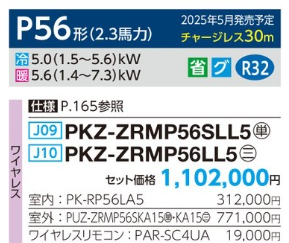三菱 スリムZR 壁掛形 <シングル> P56形 (PKZ-ZRMP56SLL5/PKZ-ZRMP56LL5)