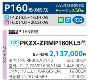 三菱 スリムZR 壁掛形 <ツイン> P160形 (PKZX-ZRMP160KL5)