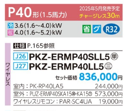 三菱 スリムER 壁掛形 <シングル> P40形 (PKZ-ERMP40SLL5/PKZ-ERMP40LL5)