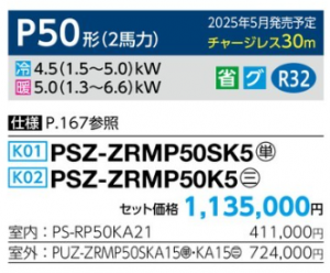 三菱 スリムZR 床置形 <シングル> P50形 (PSZ-ZRMP50SK5/PSZ-ZRMP50K5)