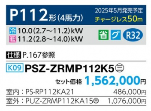 三菱 スリムZR 床置形 <シングル> P112形 (PSZ-ZRMP112K5)
