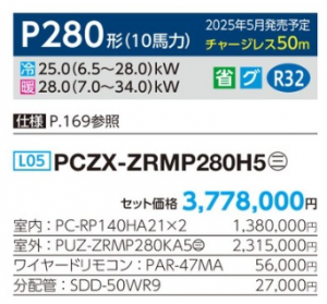 三菱 スリムZR 厨房用天吊形 <ツイン> P280形 (PCZX-ZRMP280H5)