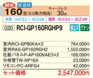 日立 省エネの達人 プレミアム 4方向天井カセット形 <ツイン>P160形 (RCI-GP160RGHP9)