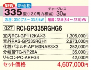 日立 省エネの達人 プレミアム 4方向天井カセット形 <トリプル>P335形 (RCI-GP335RGHG6)