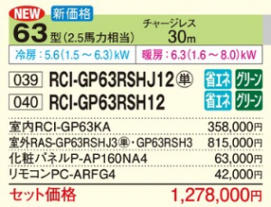 日立 省エネの達人 4方向天井カセット形 <シングル>P63形 (RCI-GP63RSHJ12/RCI-GP63RSH12)