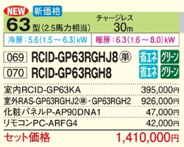日立 省エネの達人 プレミアム 2方向天井カセット形 <シングル> P63形 (RCID-GP63RGHJ8/RCID-GP63RGH8)