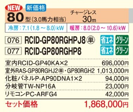 日立 省エネの達人 プレミアム 2方向天井カセット形 <ツイン> P80形 (RCID-GP80RGHPJ8/RCID-GP80RGHP8)