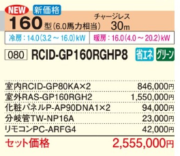 日立 省エネの達人 プレミアム 2方向天井カセット形 <ツイン> P160形 (RCID-GP160RGHP8)