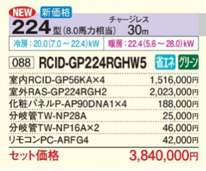 日立 省エネの達人 プレミアム 2方向天井カセット形 <フォー> P224形 (RCID-GP224RGHW5)