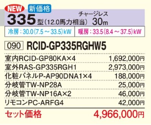 日立 省エネの達人 プレミアム 2方向天井カセット形 <フォー> P335形 (RCID-GP335RGHW5)