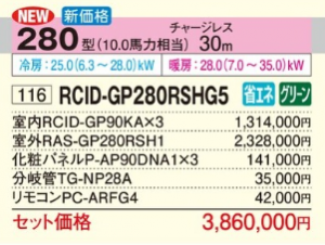 日立 省エネの達人 2方向天井カセット形 <トリプル> P280形 (RCID-GP280RSHG5)