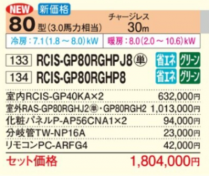 日立 省エネの達人 プレミアム 1方向天井カセット形 <ツイン> P80形 (RCIS-GP80RGHPJ8/RCIS-GP80RGHP8)