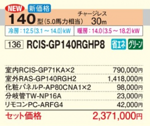 日立 省エネの達人 プレミアム 1方向天井カセット形 <ツイン> P140形 (RCIS-GP140RGHP8)