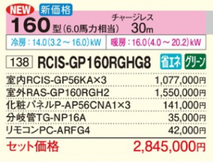 日立 省エネの達人 プレミアム 1方向天井カセット形 <トリプル> P160形 (RCIS-GP160RGHG8)