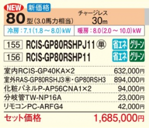 日立 省エネの達人 1方向天井カセット形 <ツイン> P80形 (RCIS-GP80RSHPJ11/RCIS-GP80RSHP11)