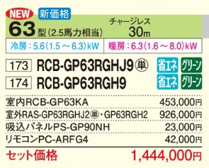 日立 省エネの達人 プレミアム 天井ビルトインカセット形 <シングル> P63形 (RCB-GP63RGHJ9/RCB-GP63RGH9)
