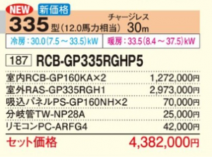 日立 省エネの達人 プレミアム 天井ビルトインカセット形 <ツイン> P335形 (RCB-GP335RGHP5)