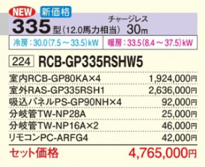 日立 省エネの達人 天井ビルトインカセット形 <フォー> P335形 (RCB-GP335RSHW5)