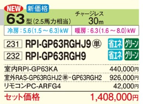 日立 高静圧 省エネの達人 プレミアム 天井埋込形 ≪シングル≫ P63形 (RPI-GP63RGHJ9/RPI-GP63RGH9)