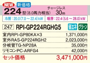 日立 高静圧 省エネの達人 プレミアム 天井埋込形 ≪トリプル≫ P224形 (RPI-GP224RGHG5)