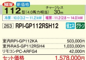 日立 高静圧 省エネの達人 天井埋込形 ≪シングル≫ P112形 (RPI-GP112RSH12)