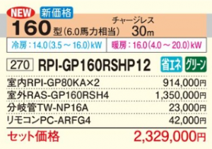 日立 高静圧 省エネの達人 天井埋込形 ≪ツイン≫ P160形 (RPI-GP160RSHP12)