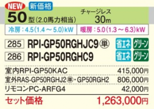 日立 中静圧 省エネの達人 プレミアム 天井埋込形 ≪シングル≫ P50形 (RPI-GP50RGHJC9/RPI-GP50RGHC9)