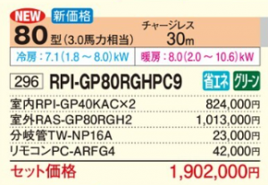 日立 中静圧 省エネの達人 プレミアム 天井埋込形 ≪ツイン≫ P80形 (RPI-GP80RGHPC9)