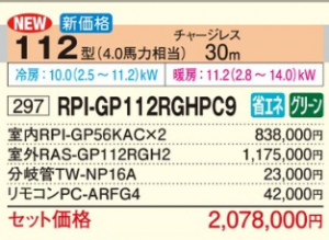 日立 中静圧 省エネの達人 プレミアム 天井埋込形 ≪ツイン≫ P112形 (RPI-GP112RGHPC9)