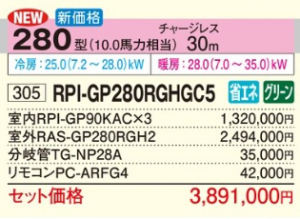日立 中静圧 省エネの達人 プレミアム 天井埋込形 ≪トリプル≫ P280形 (RPI-GP280RGHGC5)