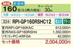 日立 中静圧 省エネの達人 天井埋込形 ≪シングル≫ P160形 (RPI-GP160RSHC12)