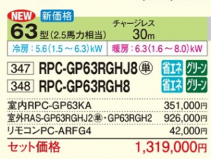 日立 省エネの達人 プレミアム 天井吊型 <シングル>P63形 (RPC-GP63RGHJ8/RPC-GP63RGH8)
