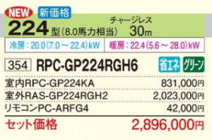 日立 省エネの達人 プレミアム 天井吊型 <シングル>P224形 (RPC-GP224RGH6)