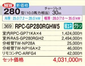 日立 省エネの達人 プレミアム 天井吊型 <フォー>P280形 (RPC-GP280RGHW5)