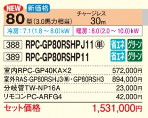 日立 省エネの達人 天井吊型 <ツイン>P80形 (RPC-GP80RSHPJ11/RPC-GP80RSHP11)