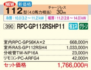 日立 省エネの達人 天井吊型 <ツイン>P112形 (RPC-GP112RSHP11)