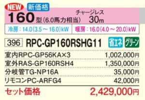 日立 省エネの達人 天井吊型 <トリプル>P160形 (RPC-GP160RSHG11)
