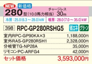 日立 省エネの達人 天井吊型 <トリプル>P280形 (RPC-GP280RSHG5)