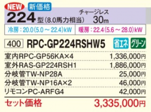 日立 省エネの達人 天井吊型 <フォー>P224形 (RPC-GP224RSHW5)