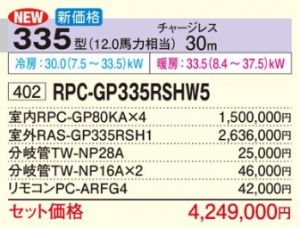 日立 省エネの達人 天井吊型 <フォー>P335形 (RPC-GP335RSHW5)