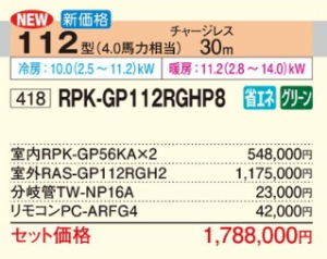 日立 省エネの達人 プレミアム 壁掛型 <ツイン>P112形 (RPK-GP112RGHP8)