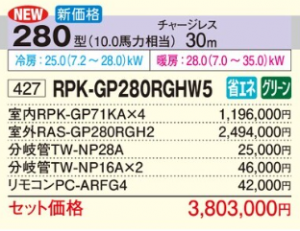 日立 省エネの達人 プレミアム 壁掛型 <フォー>P280形 (RPK-GP280RGHW5)