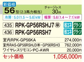 日立 省エネの達人 壁掛型 <シングル>P56形 (RPK-GP56RSHJ7/RPK-GP56RSH7)