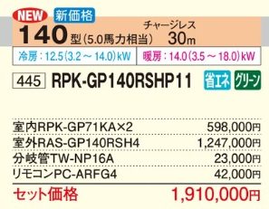日立 省エネの達人 壁掛型 <ツイン>P140形 (RPK-GP140RSHP11)
