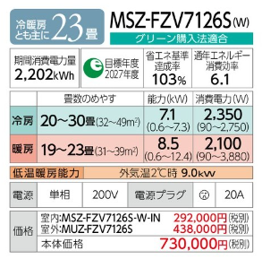 三菱 ルームエアコン FZシリーズ 23畳用 (MSZ-FZV7125S)