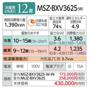 三菱 ルームエアコン BXVシリーズ 12畳用 (MSZ-BXV3625)