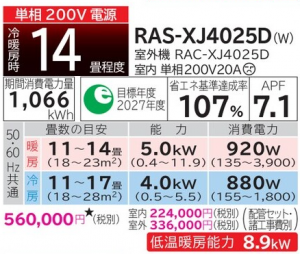 日立 ルームエアコン XJシリーズ 14畳用 (RAS-XJ4025D)