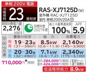 日立 ルームエアコン XJシリーズ 23畳用 (RAS-XJ7125D)