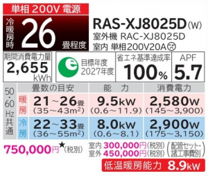 日立 ルームエアコン XJシリーズ 26畳用 (RAS-XJ8025D)